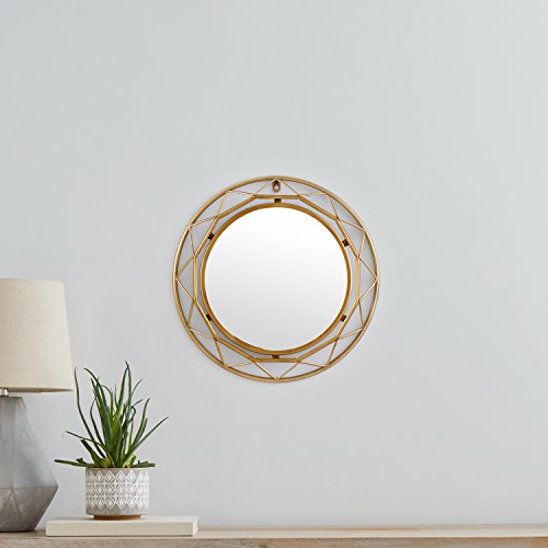 An intricate frame gives this mirror modern sophistication and a touch of glam. With classic gold finish, the lattice-work metal frame can be an eye-catching piece for a living room or hallway, or keep it just for yourself, above a bedroom bureau.