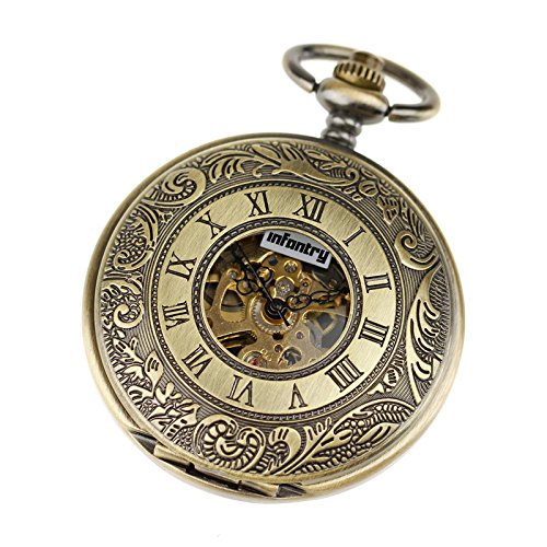 -. Title : PACIFISTOR Unisex Double Hunter Stainless Steel Semi Automatic Mechanical Skeleton Dial Pocket Watch - Brass