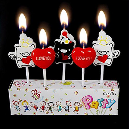 - Safe and creative, Pack of 5 cute Cartoon candles in colorful.