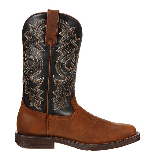 Studio : Durango Publisher : Durango Binding : Apparel Product Description These DDB0053 Durango Men's Rebel Pull-On Western Boots have brown distressed full-grain leather on the trim, pull straps and foot. This is paired with black distressed full-grain leather on the shaft. The cowboy boots have a brown and white embroidered design that looks great on the black leather. Pull straps make it easy to pull on these square toe western boots. Rebel Collection12" Distressed Full Grain LeatherMesh LiningTempered Steel ShankDouble Row Welt StitchContoured Removable Cushion InsoleLightweight, Flexible Dual-Density PU Outsole Square Toe1 1/2" Rocker Heel DDB0053 Durango Men's Rebel Pull-On Western Boots - Tan/Black 0