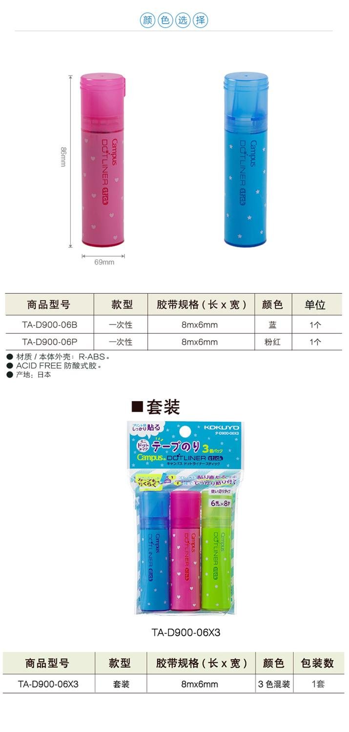 Kokuyo Tape Glue Campus Dot Liner Stick Disposable Pink (D900-06P)