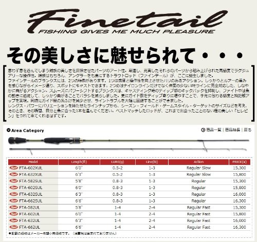메이저 크래프트 스피닝 로드 파인 테일 에리어 모델 FTA-582SUL