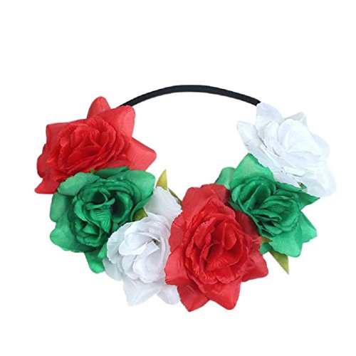 -. Feature : Simple, gorgeous, Wedding Hair Garland Headpiece / Easy to put on and creates a instant stunning new hair style / Elastic band diameter fits most heads - adults and children / Material:Fabric / Size:flower size 10cm ;Headband size 50cm