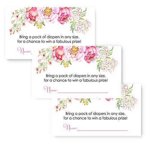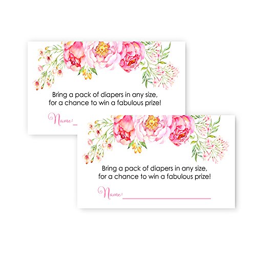 Floral Diaper Raffle Card Baby Shower Game Invitation Insert (25 Pack)