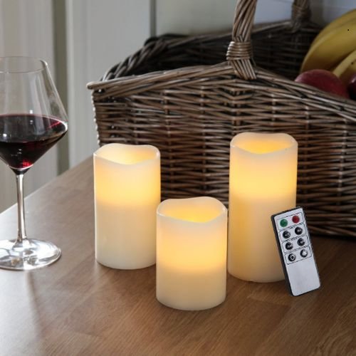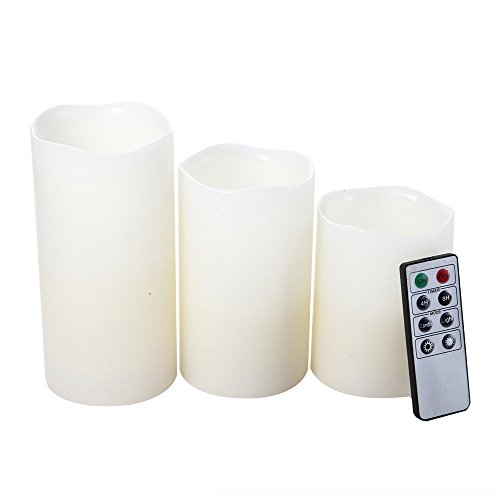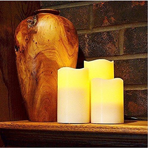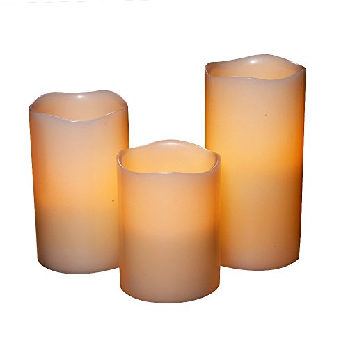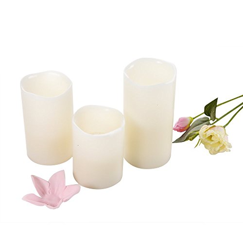 3 Real Wax Flameless Candles with Remote Control- Indoor and Outdoor Battery Operated Flickering LED Flameless Candles- Suitable for Weddings, Parties (Battery not Include)