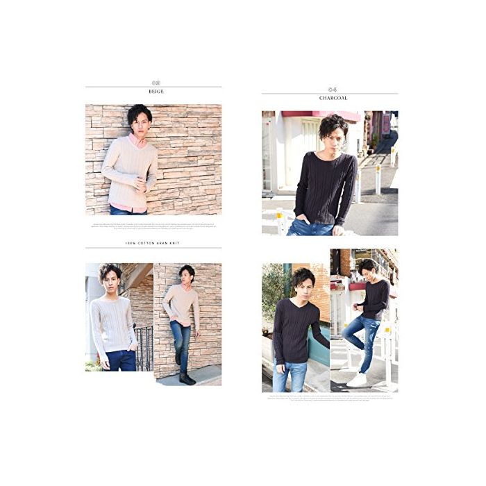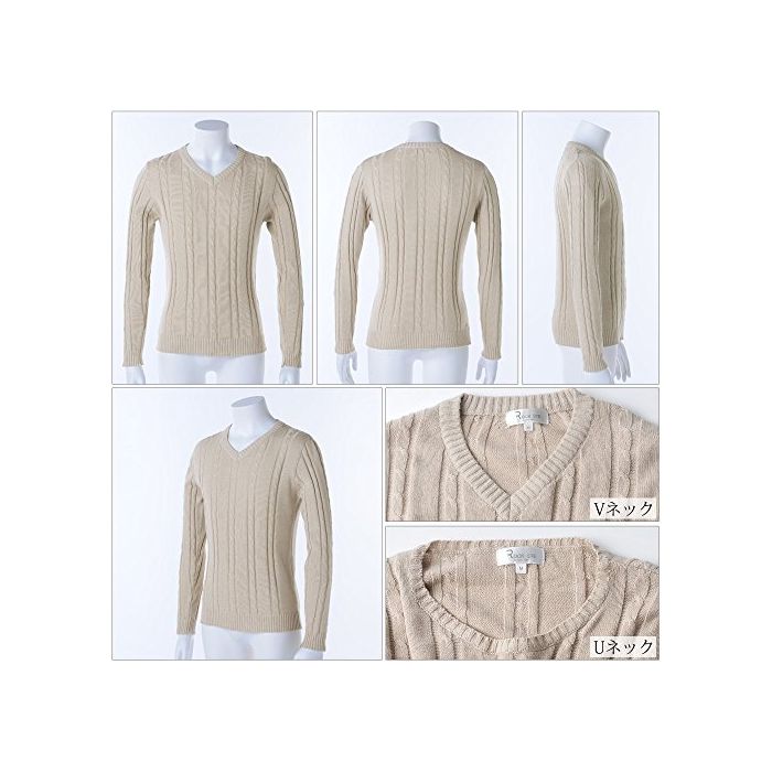 원본상품명: (ベストマト)BestMart 7G コットン アラン編みケブルニット メンズ Vネック Uネック 603475