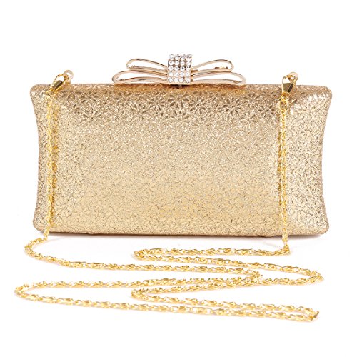 The evening bag is made of glitter Pu Leather,this handbag adds a touch of glamour and elegance to any evening outfit.This handbag has a hard frame opening with a sparkling rhinestone metal closure on the top and a small fabric lined interior that offers just enough room for a few of your essential items.A detachable chain straps provide versatile carrying options to suit your personal style.Dimensions: 18.5x10x3cm (7.28x3.93 x1.18in).Feature