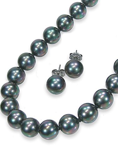 -. Title : 黒真珠ネックレス・ピアス・セット・ピーコック系カラー/黒蝶貝パール10.0ミリアップ45センチサイズ<日本製>【ギフトラッピング済み】