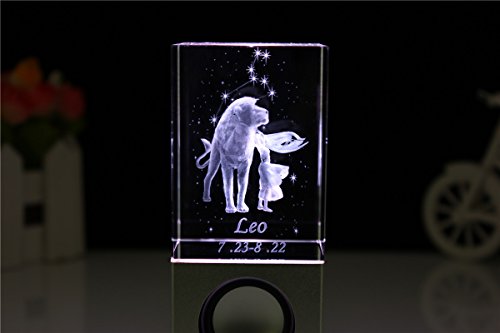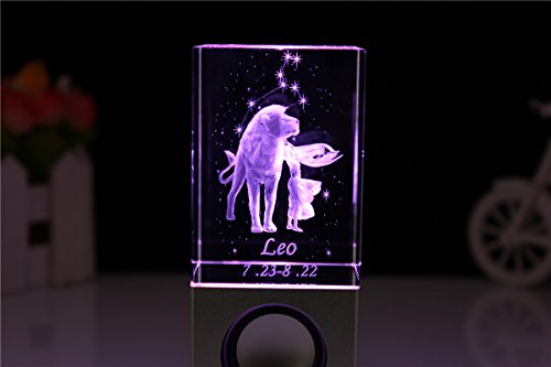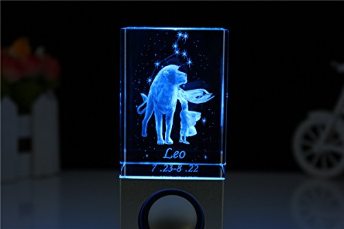 - Feature : Engraved a 3D vivid Constellations of Leo Pattern, Leo's name and date in crystal / Come with crystal speaker, audio cable, USB cable / K9 Crystal: Pure and luxury. Advanced laser inside carving tech insures the amazing 3D effects / LED colorful lights: Gradient red, yellow, blue and green lights shine in the precious crystal Birthday Cake when the music is flowing in the air. / The best birthday gift for your friends ,family ,lovers , let Crystal witness your true love.
