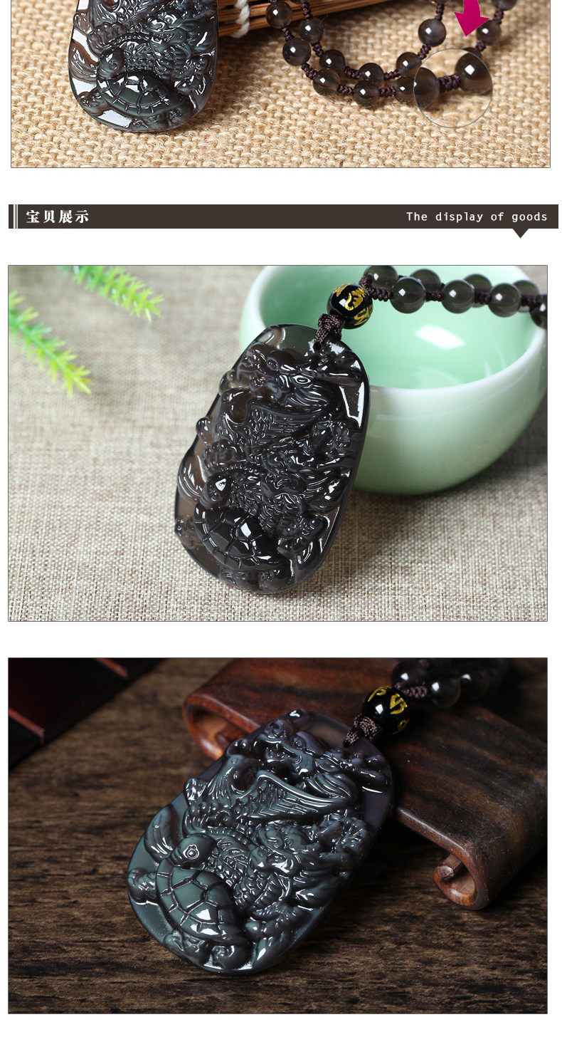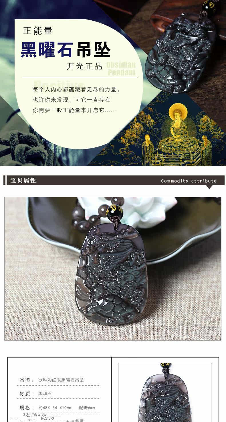 开光天然冰种彩虹眼黑曜石玄武朝圣吊坠十二生肖蛇佩戴