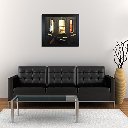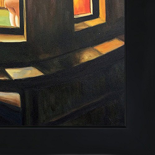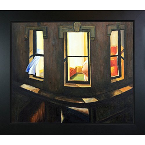 20-Inch by 24-Inch Oil Painting On Canvas Night Windows is a remarkable oil painting with exceptional use of color, detail and brush strokes. The original was created in 1928. This oil painting is filled with silence, as you are a viewer looking in on a woman alone in a room. This is a beautiful piece that will be contemplated and admired in your home by all who visit. Hopper received many honors in his lifetime for his exceptional use of color, detail, and subject matter. His classic works capture the authenticity of urban and rural American life with emotions and beauty that have placed them among the lasting and popular images of the American 20th century landscape. Make this painting a part of your home collection. Frame Description: New Age Wood Frame - Black Finish.Feature