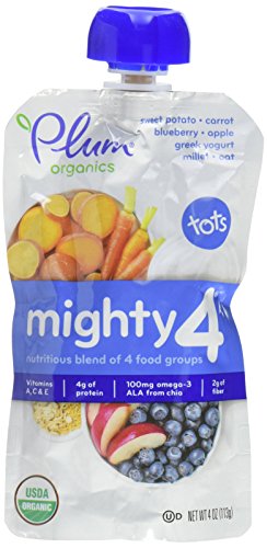 -. Title : Plum Organics Mighty 4, Organic Toddler Food, Sweet Potato, Carrot, Blueberry, Apple, Greek Yogurt, Millet & Oat, 4 ounce
