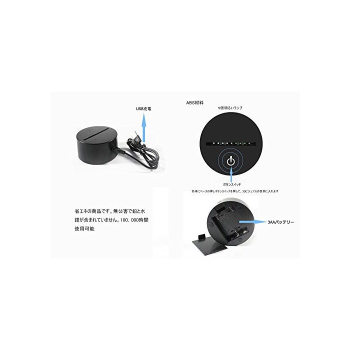 원본상품명: デスクスタンド 夜 テブルランプ LEDナイトライト 3Dlamp light 飾ランプ 創意 ホム飾り 3Dビジュアルの世界 三次元視化 イルミネション USB充電 バッテリ給電 夜間