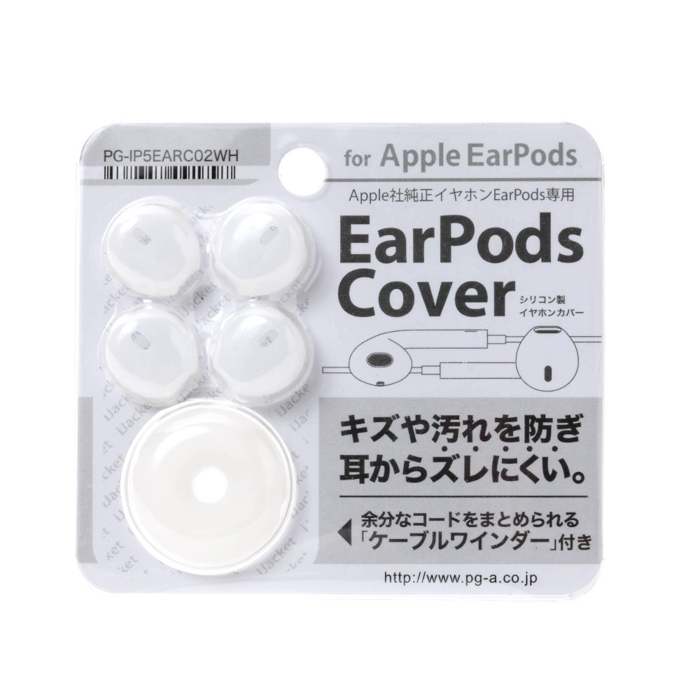 "PG - IP5EARC02WH" is a set of silicon earphone covers dedicated to Apple EarPods and a cable winder useful for adjusting cable length.