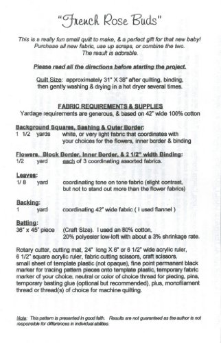 French Roses Buds Baby Infant Quilt Pattern Shabby Chic Design