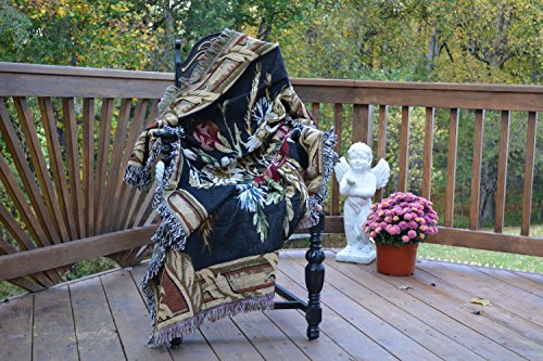 Tache Black Floral Harvest Woven Tapestry Throw Blanket