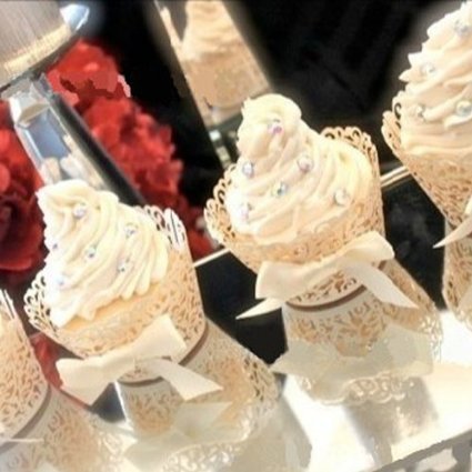 Ellami ®50 Pcs Flower Vine Filigree Cutout Lace Cupcake Wrapper Wraps Liner Wedding Party Cake Decoration(gold)