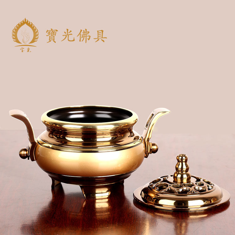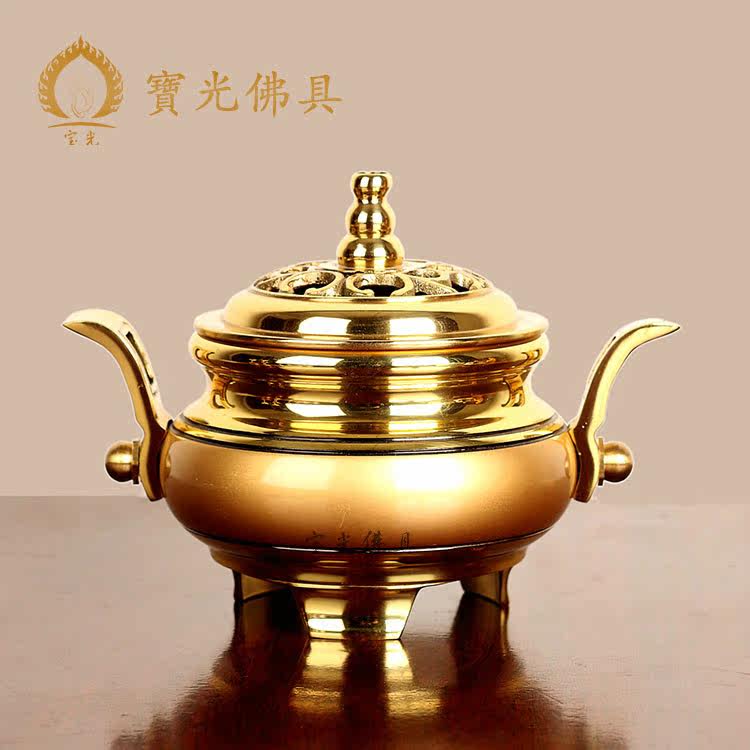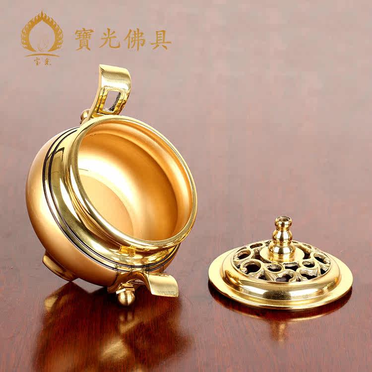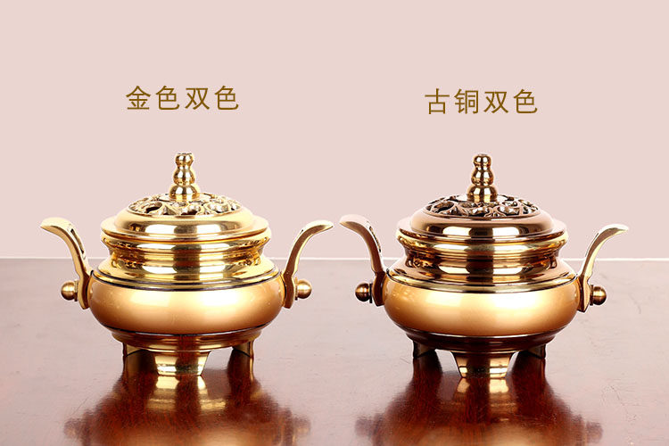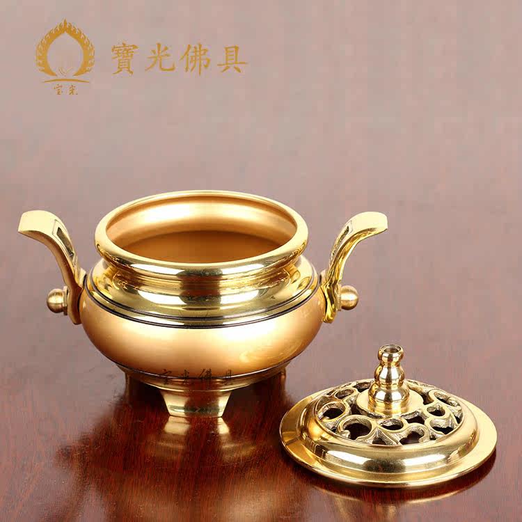 佛具纯铜双耳檀香炉香薰炉供佛香具香道戒定真香炉三足盘香炉