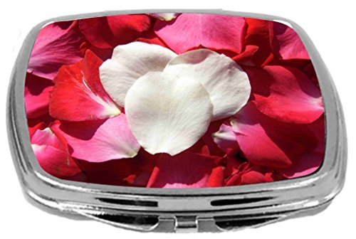 Rikki Knight Compact Mirror, Red and White Rose Petals