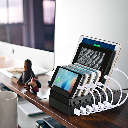 FLECK 6-port USB charging stand/ station organizer, power your devices and manage your workspace, for iPad/ iPhone/ Samsung and more