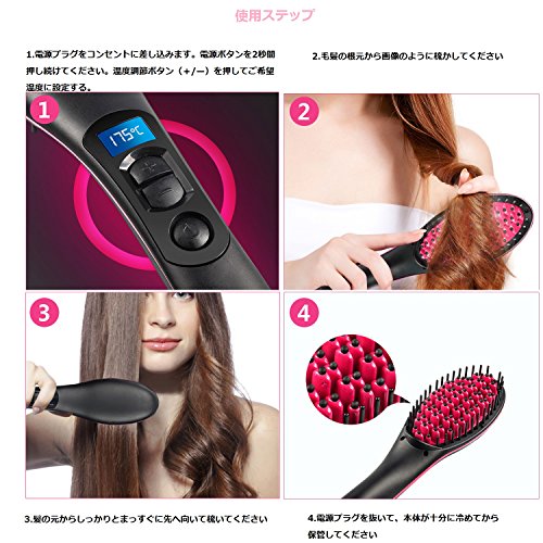 【간단 사용 할 수 있는 헤어 브러시】80℃~230℃고, 30단계 폭넓은 온도 조절.섭씨 화씨 온도 전환(450F):(+)와(-)를 동시에 누른다.곱슬머리나 침버릇을 스트레이트로세트하고, 이른 아침에서도 자연스러운 헤어 스타일을 간단하게 즐길 수 있습니다!
