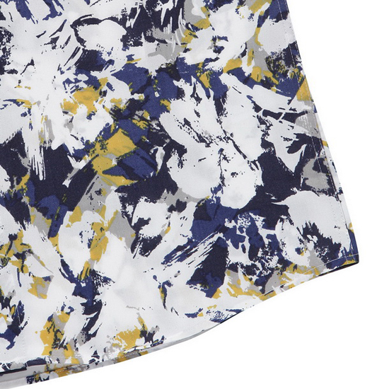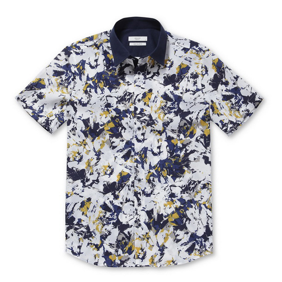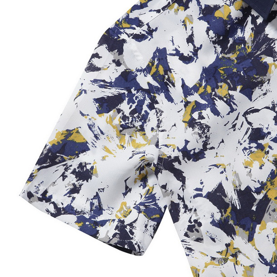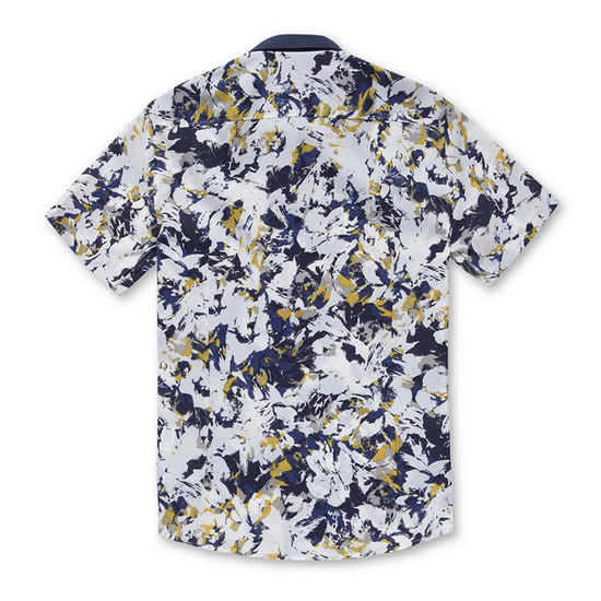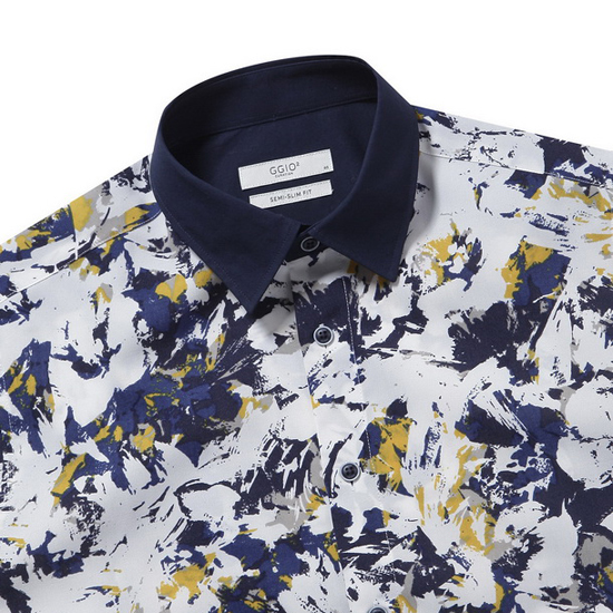 - 배색의 나염 프린트로 포인트를 준 남성 셔츠.