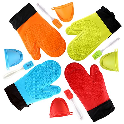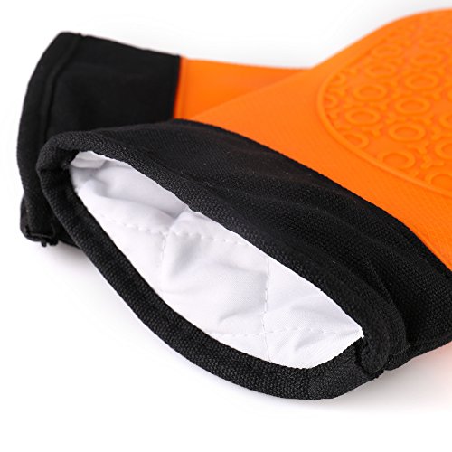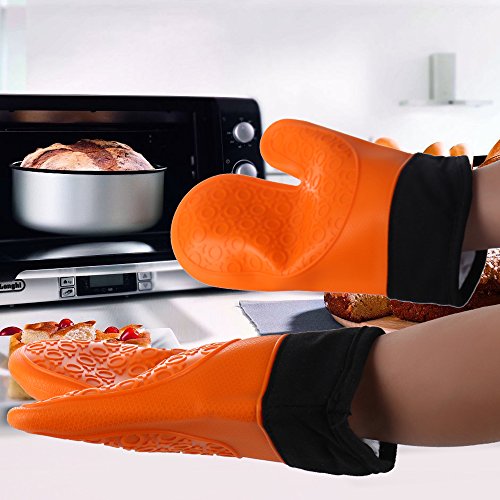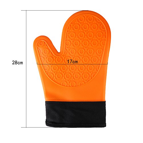 Non-slip Grip & Waterproof - Each of our silicone oven mitts comes with patterned gripping surfaces to reduce the risk of accidents.Never again worry about slipping ,plates, hot pans or steamy ovens,lets you work with food in hot water or oil,easy to clean with a damp cloth