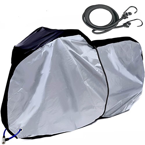 -. Feature : <高品質素材で各機能アップ>テントにも使われる高級190Tポリエステルを採用!!従来商品に比べて厚手、耐久性、防水 撥水 性、防風力などをアップしました! / <バンド紐付属>裾ゴム機能+ワンタッチバックルと共に、さらにバンド紐付属!!トリプル機能で完全 風飛び防止 対策!!紐は、普段は荷台紐としても使える優れ物! / <高UV対策&防犯対策>UVカット(+40)の高紫外線対策!!盗難対策として、丈夫な大型ロックホールを装備!! / <ゆったりサイズ>抜群にかぶせ易い立体構造!黒のラインで、分かりやすい!自転車カバー 破れにくい 厚手 (荷台用ゴムひも付)防水 防犯 防風 ゆったりサイズで 29 インチまで対応! / <一ヶ月保障>品質に自信があるから、購入日から無条件一ケ月間のメーカー保証付きです!!ご使用になった後でも大丈夫!!