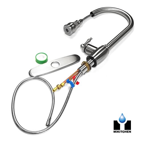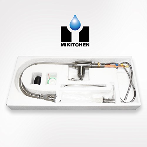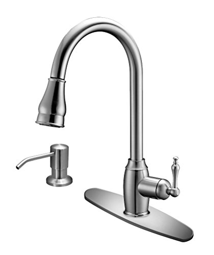 MiProducts FTPDS-01BN MiKitchen Single Handle Kitchen Faucet with Pull Down Sprayer, Soap Dispenser and Brushed Nickel Finish, 17.5-Inch Tall