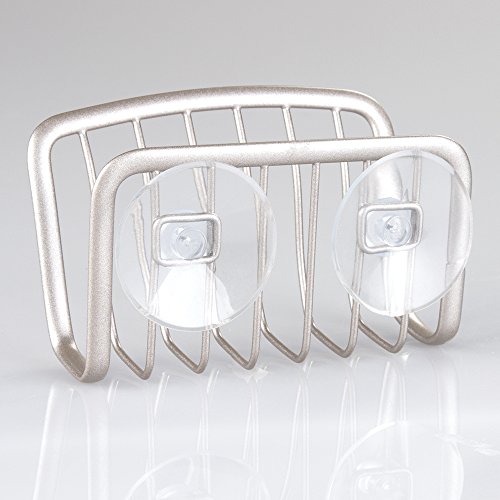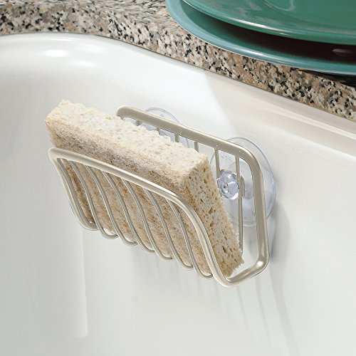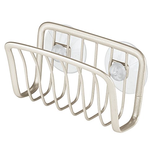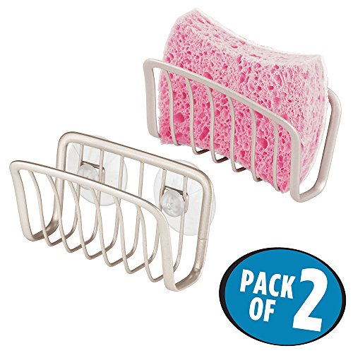 mDesign Kitchen Sink Suction Holder for Sponges, Scrubbers, Soap - Pack of 2, Satin Nickel