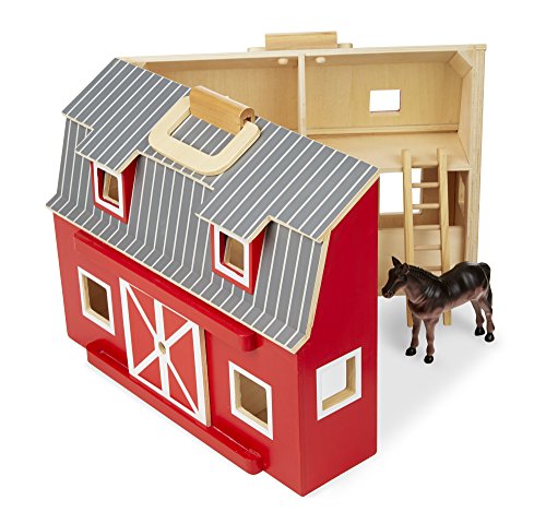 Portable wooden barn opens wide for easy play access and closes up to take with you.