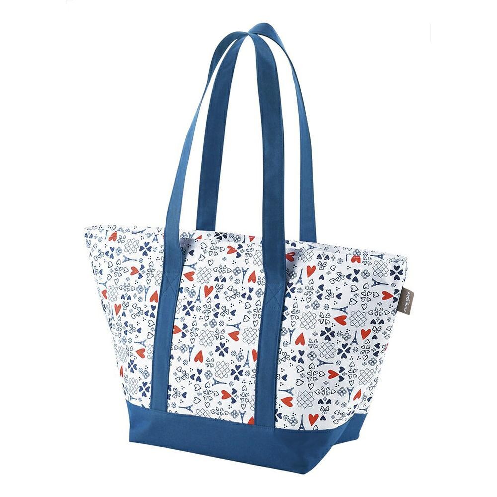 | ネイビーの柄とオレンジのハートが可愛いトートクーラーバッグ。 |