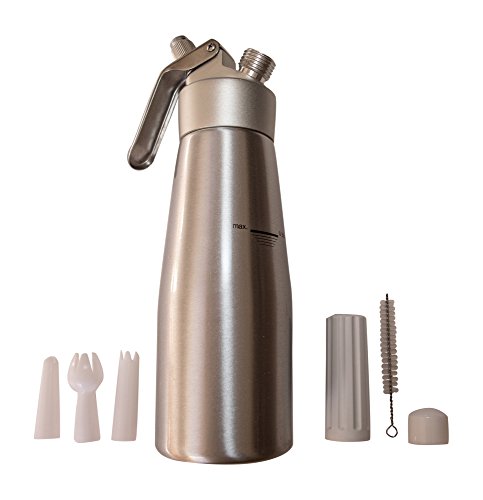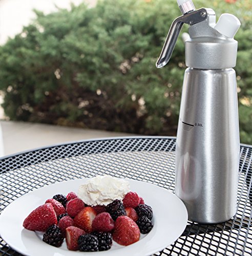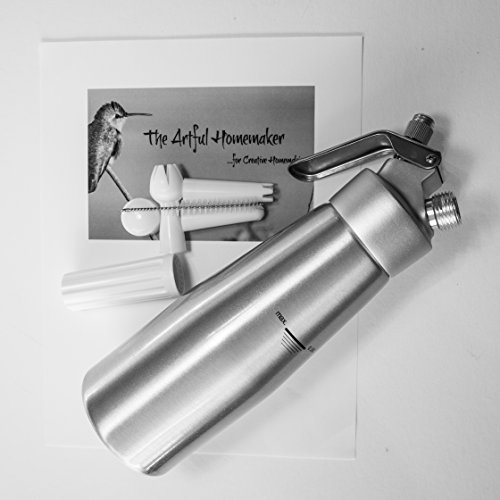 Premium Whipped Cream Dispenser Aluminum Cream Whipper Includes 3 Whipping Decorating Tips with Cleaning Brush from The Artful Homemaker - 1 Pint Canister - Uses N2O Cartridges (Not Included)