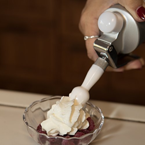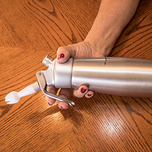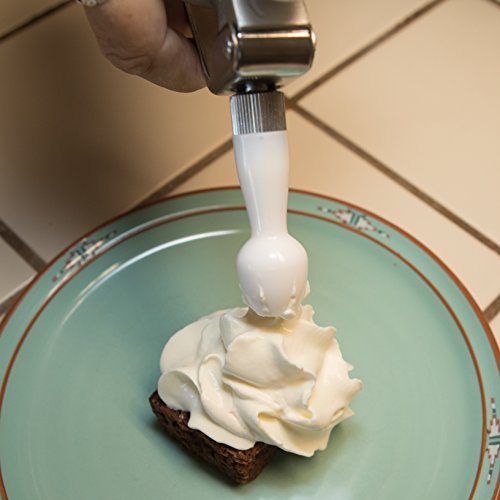 COMES WITH STEP-BY-STEP INSTRUCTIONS plus how-to video. We will walk you through the steps to making the best whipped cream for your family and guests. Takes only minutes to use with no mess once you know how! Includes three strong nozzles for a variety in decorating your favorite foods and a mini-brush to reach the hard-to-clean places.