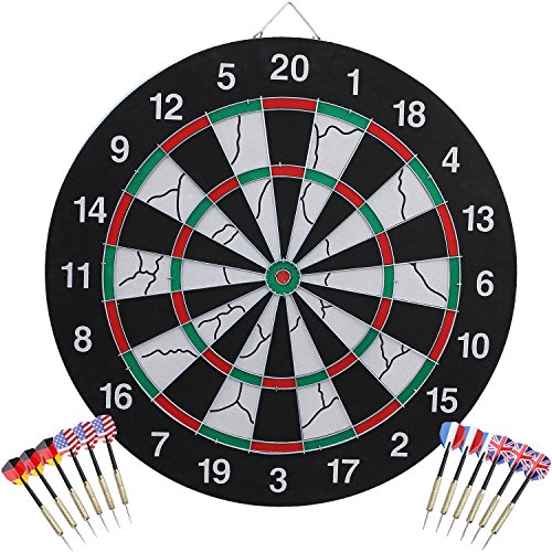 -. Feature : DOUBLE SIDED - The obverse is regulation-size bristle dart board ideal for tournament, tavern, or home use. The reverse is black alternating with white board easy for beginners. / DARTBOARD'S SIZE - Kingstar Double-sided Home Dartboard is an official tournament size board, measuring 18" in diameter and 1.5" D / ACCESSORIES - Includes complete sets of steel tip darts (12 total); Dartboard accommodates both steel tip and soft tip darts. / FAMILY FUN: Learn the game of darts, play alone, with a friend or the family, in a safe way that's safe for the house. Improve coordination & encourage sportsmanship. Fun way to spend a family game night. / PERFECT GIFT - Dart Board is the finest, well designed, dart set made. Multiple Game Options Perfect Gifts For Christmas birthday and so on.