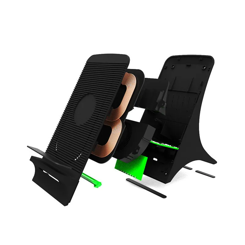 3). The front wind inlet can turn down phones' temperature, the back wind outlet to reduce temperatures of mobile phones and wireless charger coil. It's more secure to use, quicker to charge.