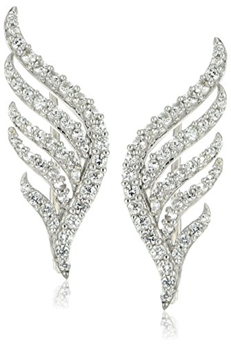 XPY Sterling Silver Created White Sapphire Winged Climber Ear Cuffs