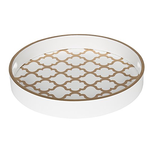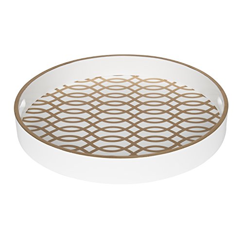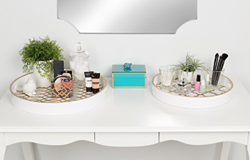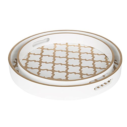 Kate and Laurel Palm Nesting Round Wood Decorative Accent Trays, White and Gold