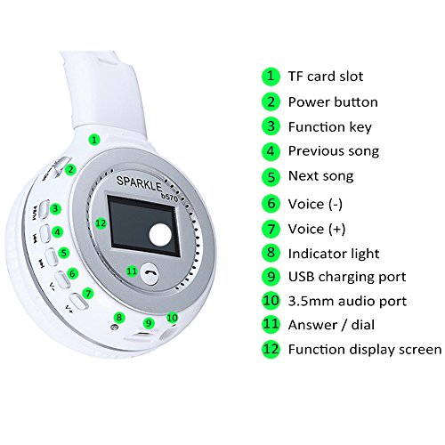 Micro SD / TF card slot included, you can play music on your micro SD card easily. Use TF card, listening to the music and audio you want, support micro SD / TF card Up to 32GB (Micro SD / TF card is not included).