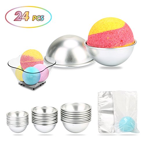 Bath Bomb Mold,DIY bath bomb kits,24 pcs 3 size with 100 Packs 6 X 4.3 inch Shrink Wrap Bags for Crafting Your Own Fizzles.