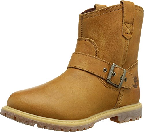 Hybrid western and work-inspired boot featuring buckled ankle harness and topline scallop with pull-on loops