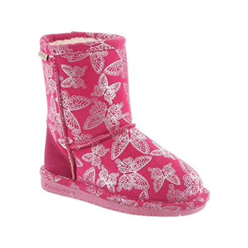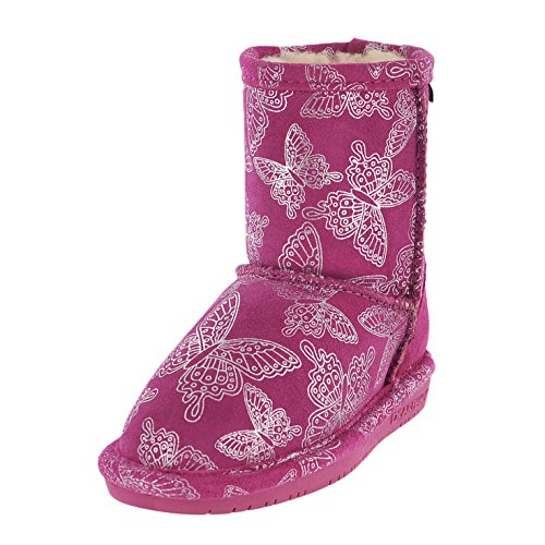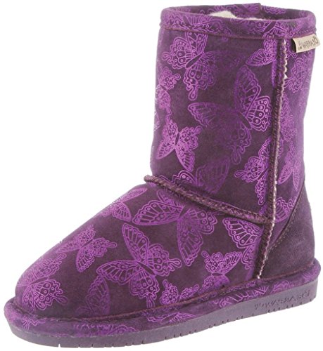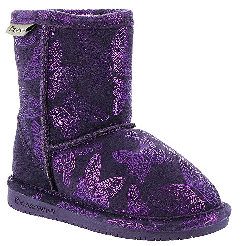 Kids Bearpaw Boots: Girls Bearpaw Outdoor Boots. Belle is the most fun and playful boot designed for girls! Besides being cute and comfortable, these boots by Bearpaw also feature butterfly styling, a cow suede upper, a sheepskin footbed, wool blend lining, and a classic TPR outsole. Grandma Bait - Get Hooked. Fur Origin: China. BearPaw tends to run small--it is recommended you order 1/2 or a full size larger than your normal shoe size. 1868T
