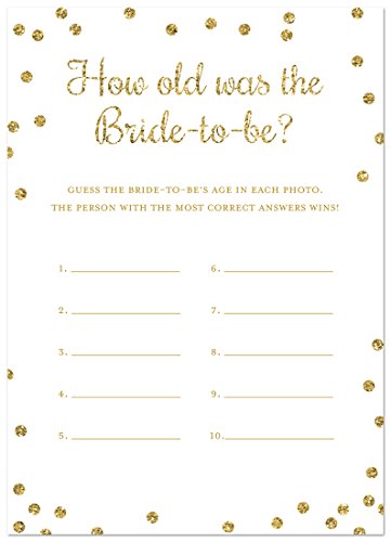 - This cute age guessing game card features faux gold glitter dots. This is the perfect way to add some fun to your bridal shower.