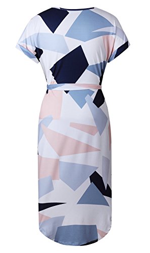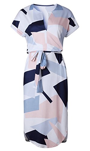 Women's Geometric Pattern Dress Juniors V neck Floral Print Slim Elasticated Waist Midi dress
