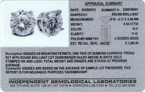 Diamond Studs Forever - Ohrstecker mit 1/2 ct. Diamanten GH/I1-I2 - Weissgold 14 Karat