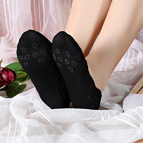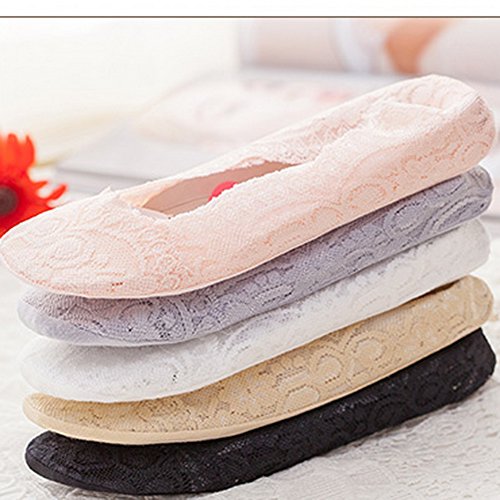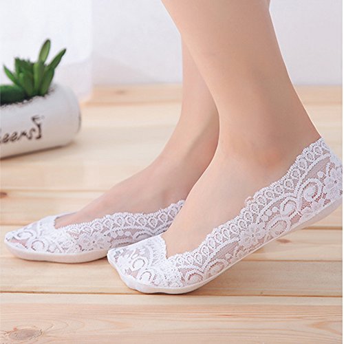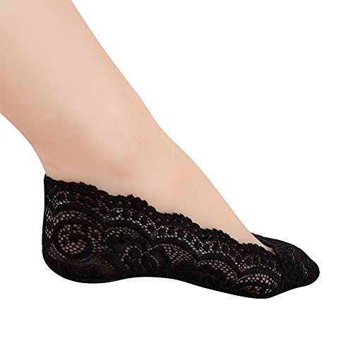 -. Feature : Material: Bottom part 95% cotton, easy to absorbs sweat and make you confortable. Lace part is 90% nylon and 10% spandex.Elastic closure & single layer sock provides a second skin feel. / One size Fits almost all the size of US Women(For shoe size 5.5-8.5.) 3 Pairs /Set. / Elastic Comfortable Flat Boat Line Socks of Silicone Anti-Slip Heel Grip. Silicone grip all around the sock cuff - Makes the socks stay on your feet much better and to keep socks in place. / Designed to be truly hidden to the visible eye for open shoes. Great when wearing high heels shoe, loafers, ballet shoes, pumps, sneakers etc. / Cute Sexy Comfortable Floral Lace Sheer Footie Soft Foot Invisible Shoe Liner Below Ankle Cover Socks.Wash in cold water. Line dry. No bleach.