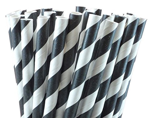 Black Striped Paper Straws - 144
