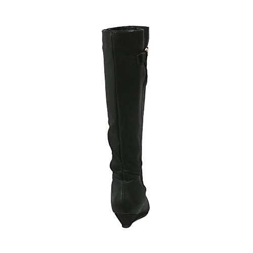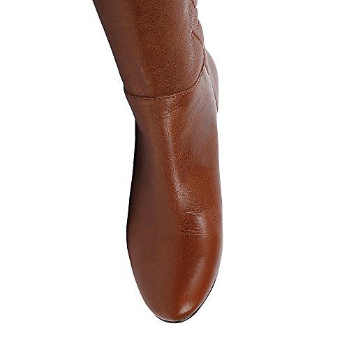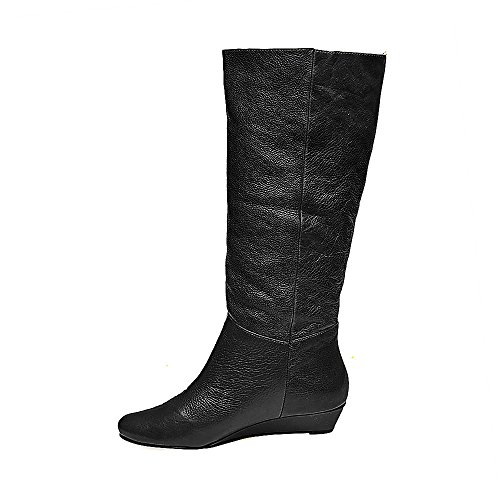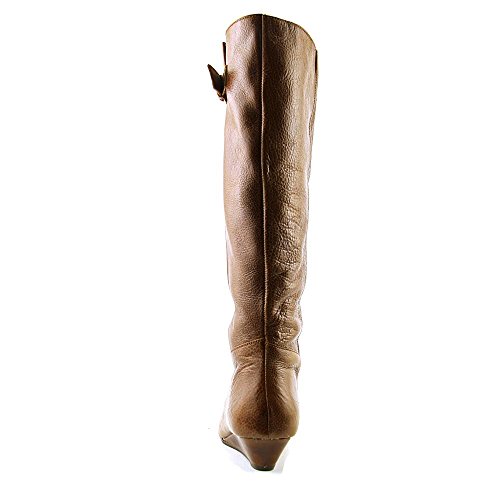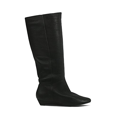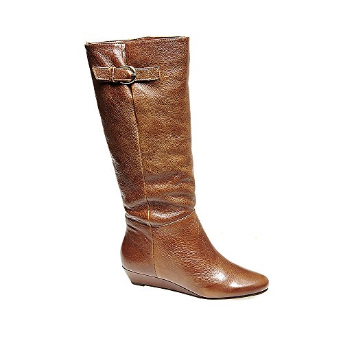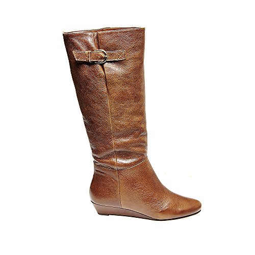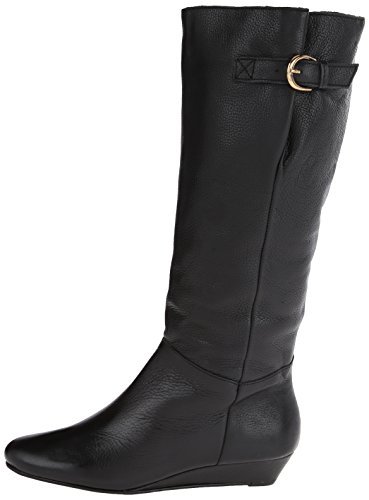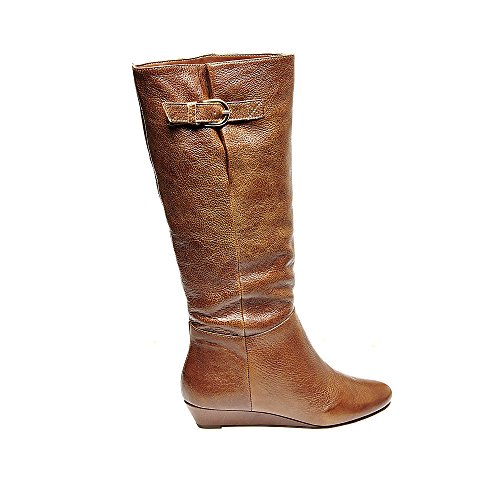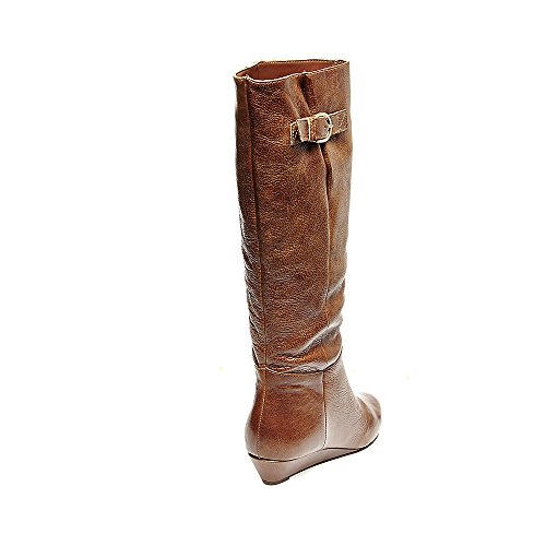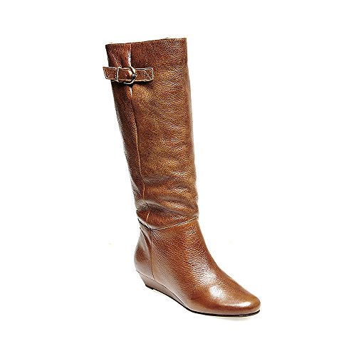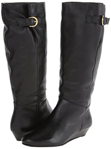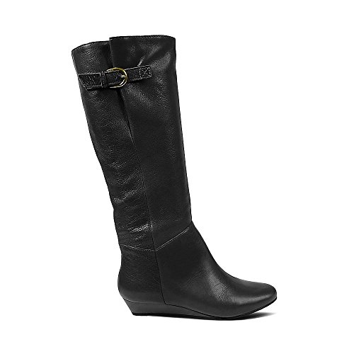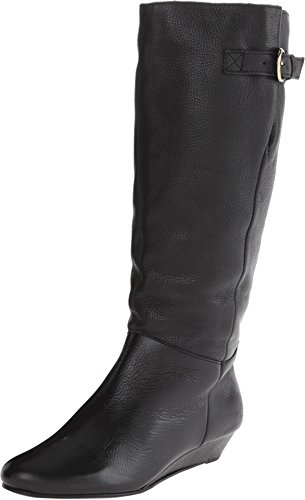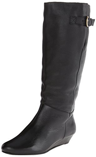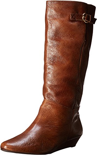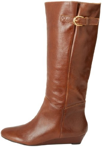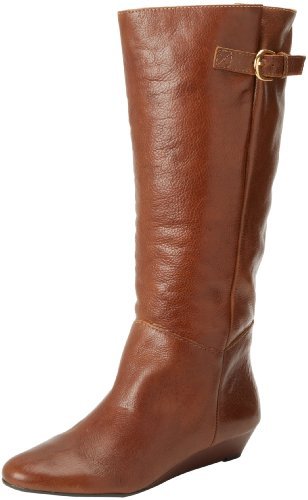 Amazon.com This Intyce-ing riding boot from Steve Madden is crafted from supple leather and features a demure buckle detail at the shaft. A low wedge heel and gently rounded toe make for a feminine silhouette, while the rubber outsole encourages steady stepping. 0
