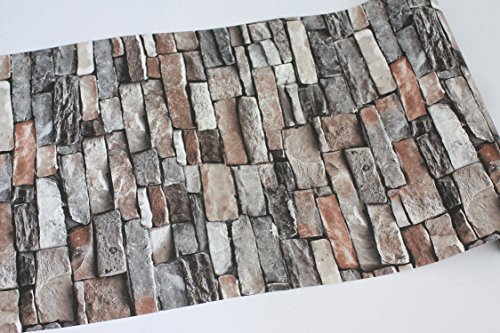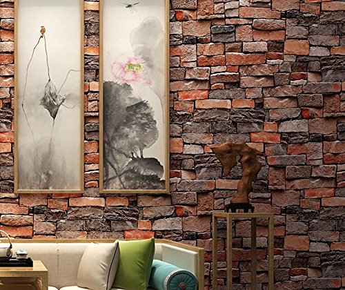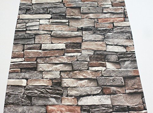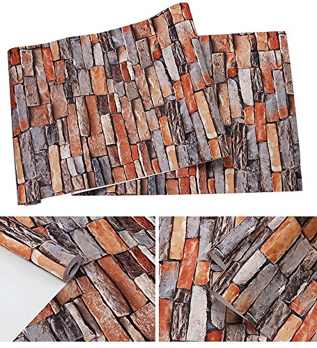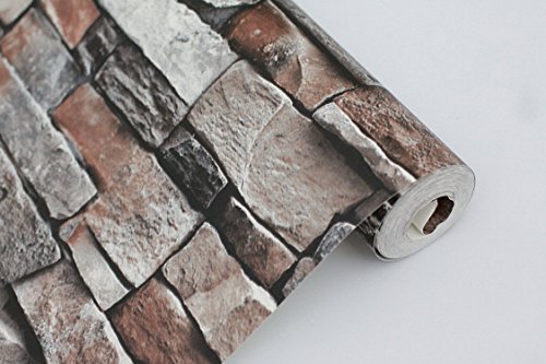 -. Feature : Faux Stone Brick Wallpaper, Vinyl Coated, Flat P.R.Int / Large Size, One Double Roll. Each Roll is 20.8 Inches Wide by 10.3 Yard Long, Covering 54 Square ft. / Unprepasted, Washable, Strippable, Super Thick and durable.Wallpaper Glue can be Bought in your Local Hardware Store.Far Thicker and More Durable than Peel&Stick Wallpaper / Strong 3d Visual Effect with Flat P.R.Int, Looks Real Up! / Please Place Enough Rolls One Time to Avoid Color Difference. Antimicrobial Product Protection Works to Inhibit Bacterial Odors, Stains and Mold and Mildew Growth