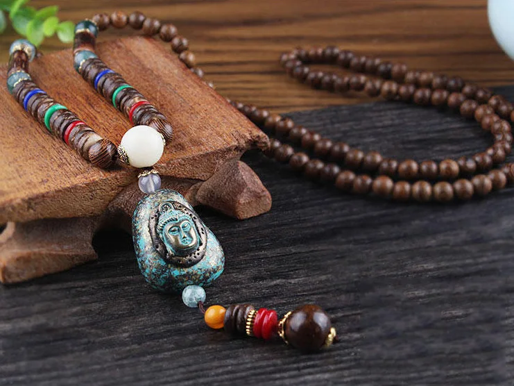 Item Name: ethnic necklace/buddha necklace/wood necklace